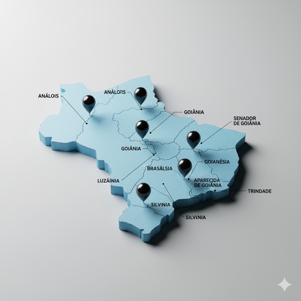 Estamos presentes com obras nos municipios de .Goiânia, Anápolis, Aparecida de Goiania, Senador Canedo, Trindade, Abadiania, Alexânia, Silvânia Vianápolis.